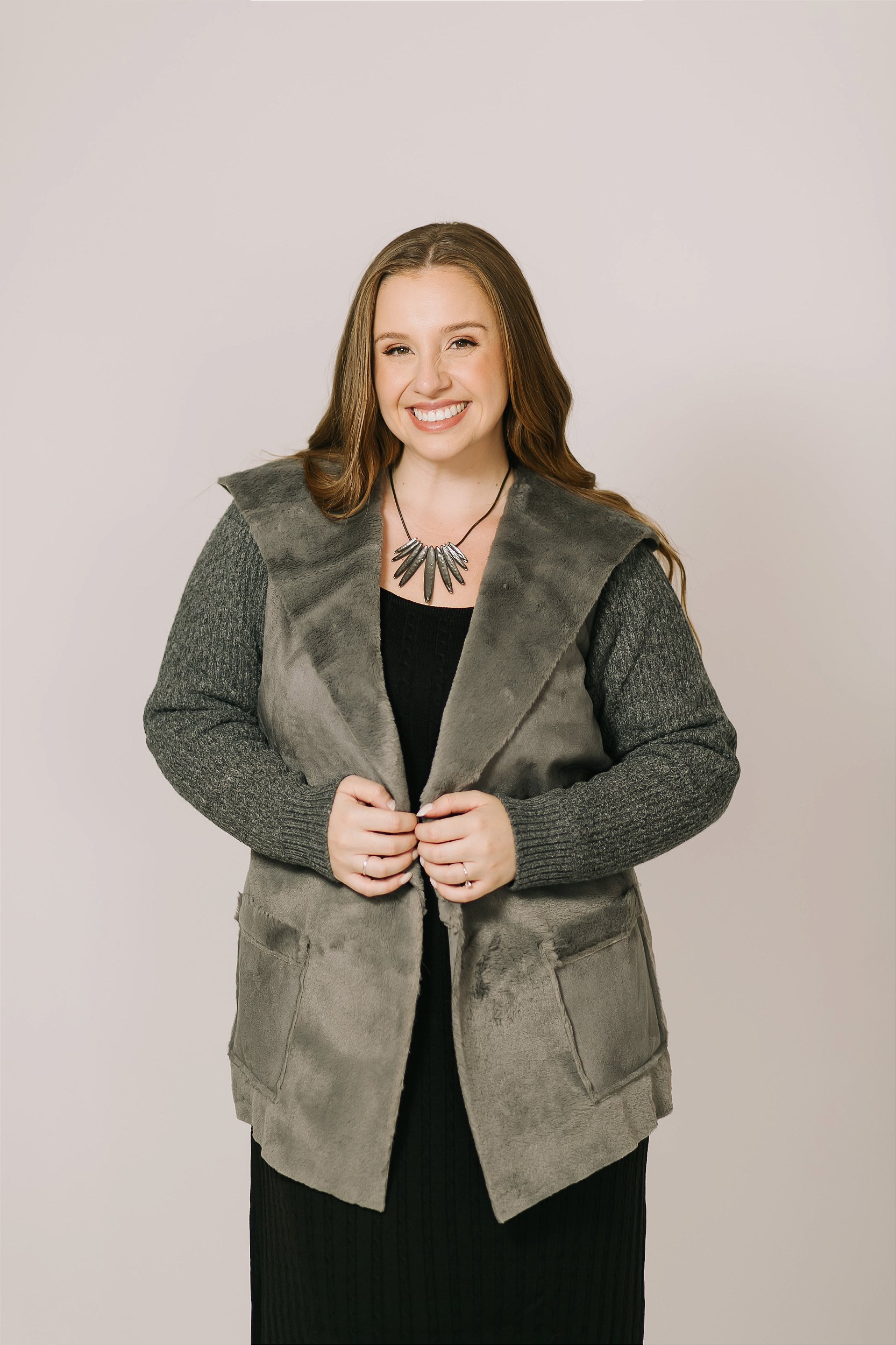 A modelagem sem fechamento reforça a versatilidade, permitindo sobreposições práticas e elegantes, enquanto os bolsos frontais adicionam funcionalidade ao dia a dia. Ideal para composições urbanas e modernas, é aquele tipo de peça que se impõe com suavidade: presença forte, sem excessos.
